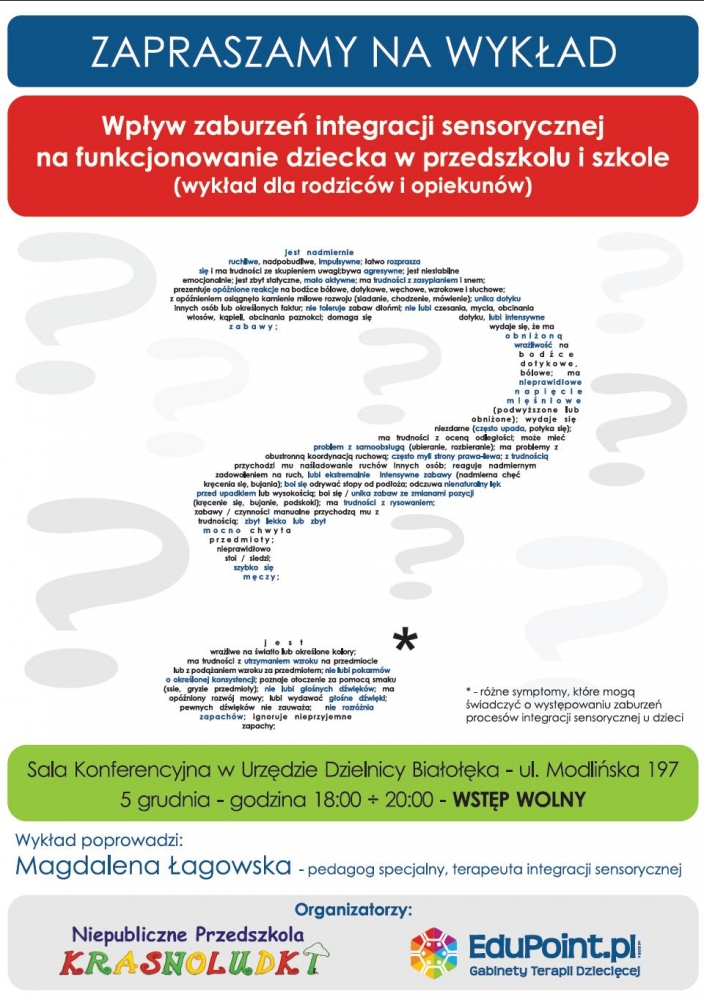 Prowadząca: p. Magdalena Łagowska - pedagog specjalny, terapeuta SI